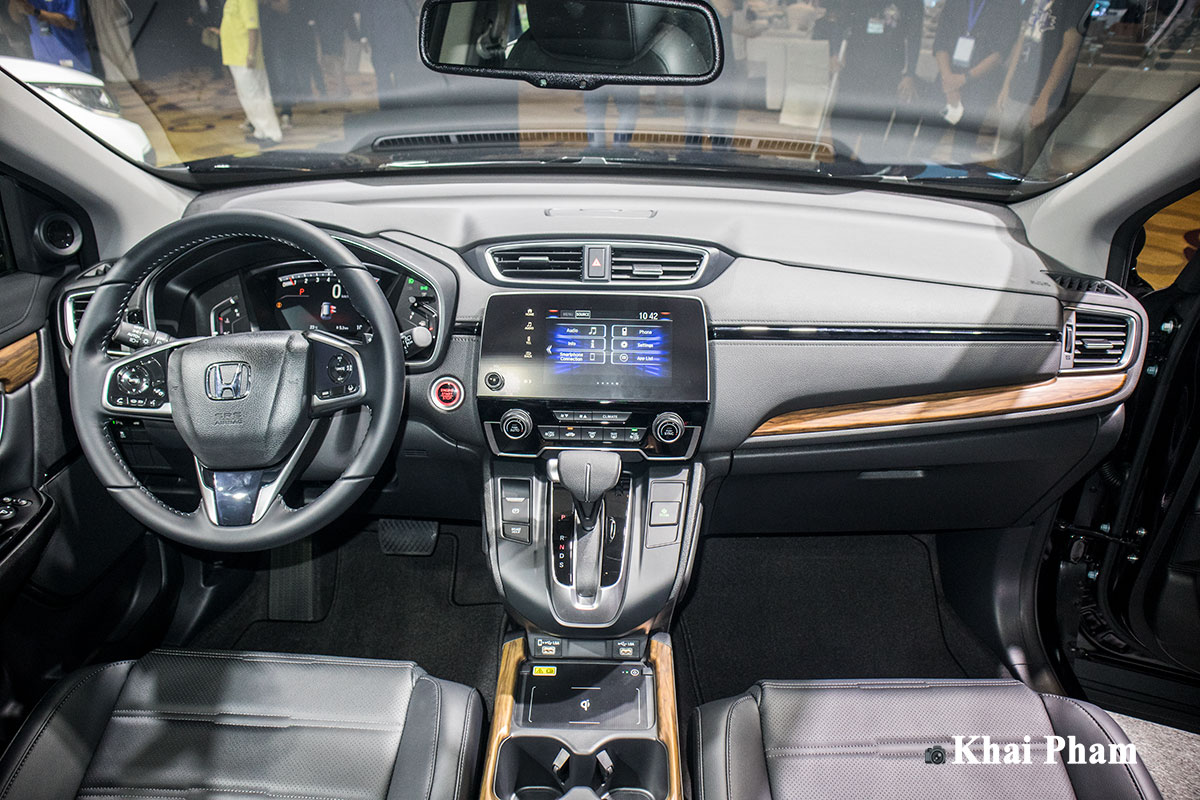 Ngoài ra, hai bản G và L còn có khoang lái cao cấp với ốp vân gỗ, màn hình cảm ứng 7 inch hỗ trợ kết nối điện thoại thông minh và dàn âm thanh 6 loa. Honda CR-V 2020 còn được trang bị hệ thống điều hoà tự động 2 vùng, cửa sổ trời, phanh tay điện tử. Đặc biệt, phiên bản L của Honda CR-V 2020 sẽ được bổ sung hệ thống sạc không dây chuẩn Qi, đá cốp rảnh tay...