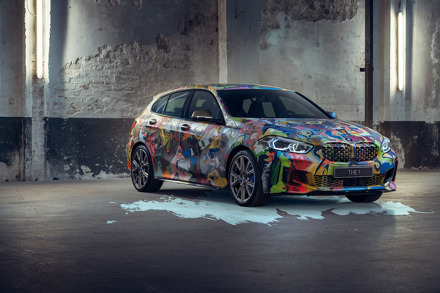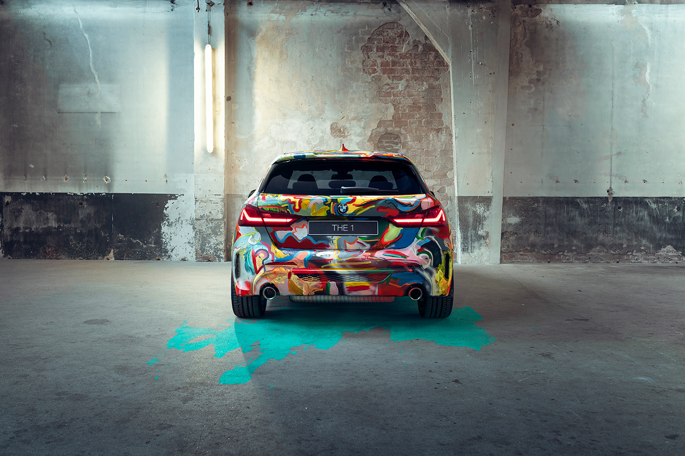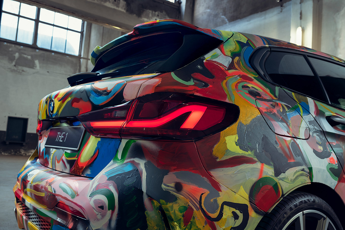 Mẫu BMW 1-Series trong bộ ảnh đầy tính nghệ thuật khi được phủ màu sắc khá sặc sỡ. Những chiếc xe BMW nổi tiếng với phong cách thể thao, sang trọng cùng nhiều trang bị tiện nghi hiện đại thu hút nhóm khách hàng trẻ thành đạt.