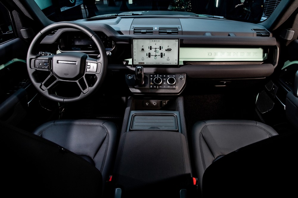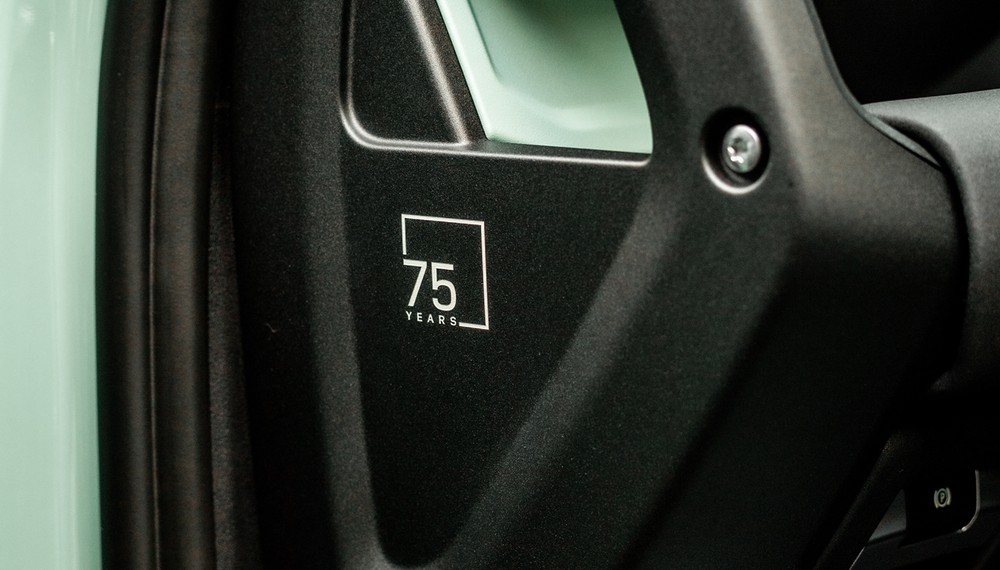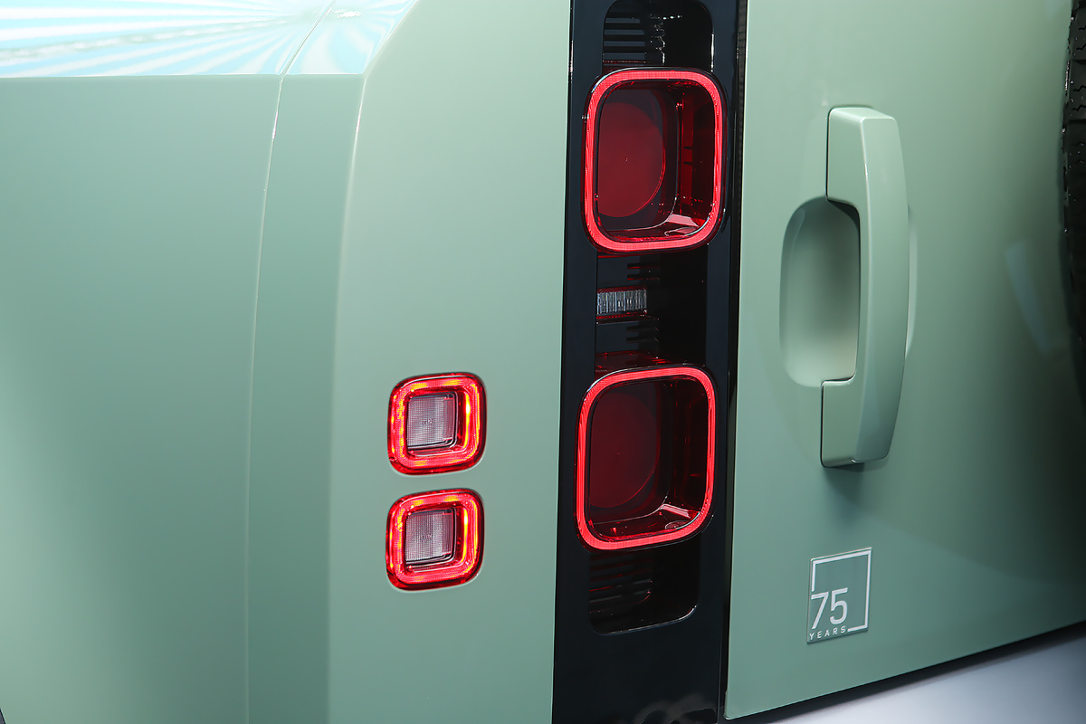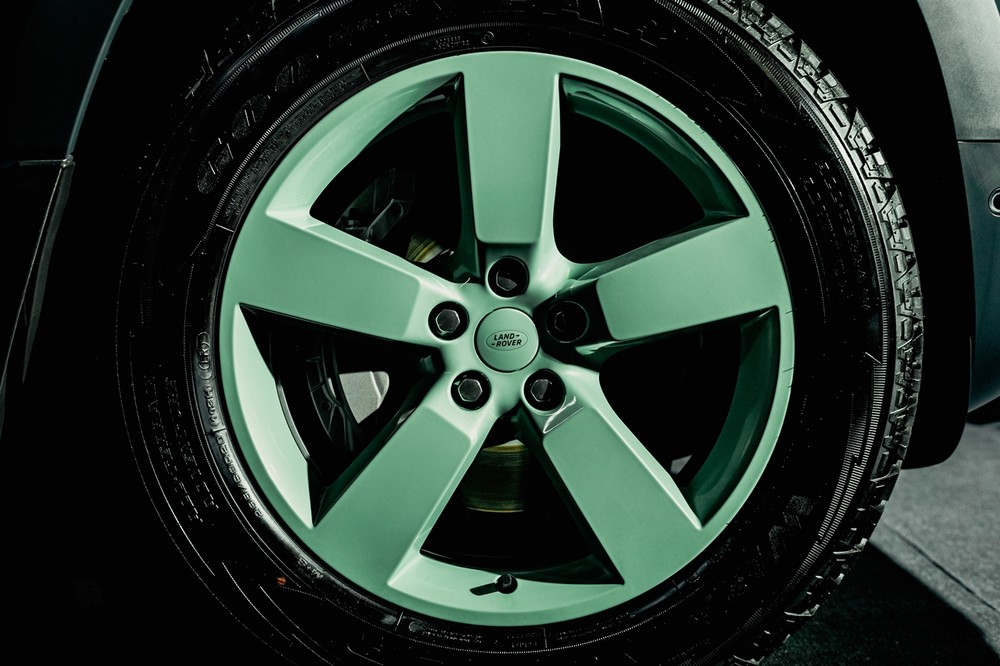 Cụ thể, chiếc xe khoác lên mình bộ cánh màu sơn xanh lá nhạt Grasmere Green vốn lấy cảm hứng từ chiếc Defender đầu tiên xuất xưởng vào năm 1948. Ngoài tổng thể xe, màu sơn này còn được phủ trên các bộ phận khác như la-zăng 20 inch 5 chấu, nắp chụp mâm xe và bảng táp-lô. Huy hiệu 75 Years xuất hiện tại nhiều vị trí cùng kính tối màu và cản sơn màu bạc Ceres cũng là điểm đặc trưng riêng chỉ có trên của Defender 75th Limited Edition.