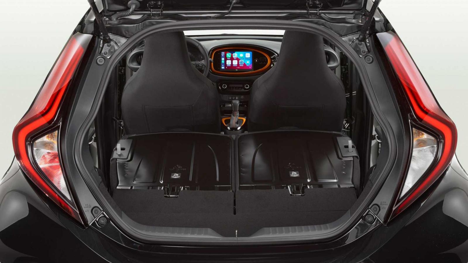 Ngoài ra, chiếc xe mới cũng rộng hơn 125 mm (đạt mức 1.740 mm) và cao hơn 65 mm (đạt mức 1.525 mm) so với người tiền nhiệm, kích thước của Toyota Aygo X 2022 giờ đây đã tương đương với Hyundai i10, Kia Morning và Fiat Panda. Khi ghế dựng, sức chứa khoang hành lý tối đa là 269 lít. Khi gập hàng ghế sau xuống, không gian khoang hành lý sẽ tăng lên đến 829 lít.