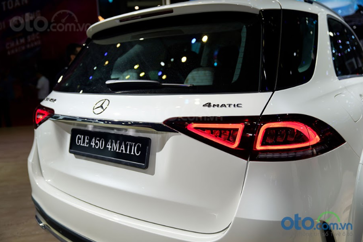 Cụm đèn hậu thiết kế nhỏ gọn với đồ họa LED sắc nét. Cột C to bản buông dần xuống nay nhô hẳn ra cùng với vòm bánh sau. Bộ mâm AMG 20 inch 5 chấu kép sơn 2 màu tương phản, tạo ra một ngoại hình hầm hố và vững chãi bên hông xe. Hệ số cản của GLE là 0,29, mức tốt nhất phân khúc.